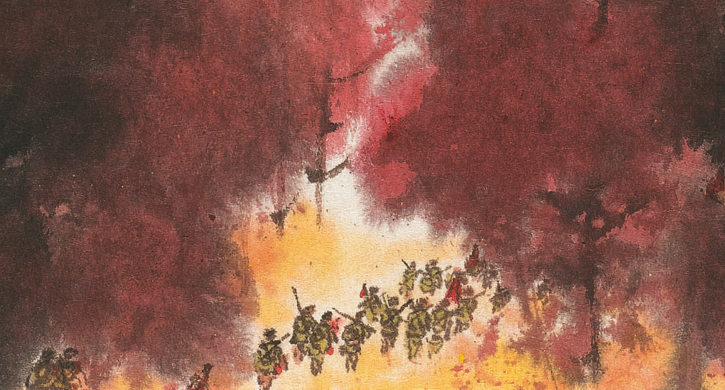 说明:此幅为傅抱石创作毛主席诗意•重阳节题材的唯一一幅完成稿。