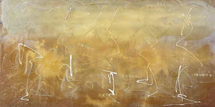 感知和感覺是崔憲基藝術創造的源泉,《水墨NO.6》是其對感覺極為傾注的綜合材料作品,客觀與主觀之間的撞擊不斷產生一種新的創造欲望孜孜以求追隨著生命步履。此幅作品尺寸較大,通過體量和色彩占據著整個空間,不同顏色的線狀的形體提示著一些書法的造型因素。是其綜合材料作品中重要的代表作之一。