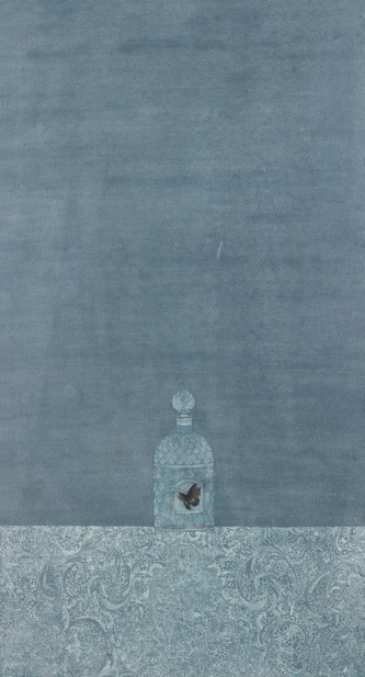 阿海的作家朋友苏童在明孝陵撞见了南京的灵魂,“在那个炎热得处处流火的日子里,抬手触摸到这这座陵墓的石墙,竟然感到了一种浸润的冰凉的寒意,感到石墙在青苔的掩饰下做着一个灰色的梦……”苏童通过大量的小说文本,记录了南方族群的心灵史,建立起独特的南方想象。和苏童一样,阿海绘画的精神内核也是南京的,或者说南方的。所谓南方是一个庞大的文化象征或隐喻,包有无限丰富的意象,但基调是伤感、颓废、消极和疼痛。虽然长期侨居北京,但阿海的艺术创作依旧属于南方叙事,唯美、颓废,虚无,表达了一个漂泊者对废墟般的精神家园的追忆和礼赞。