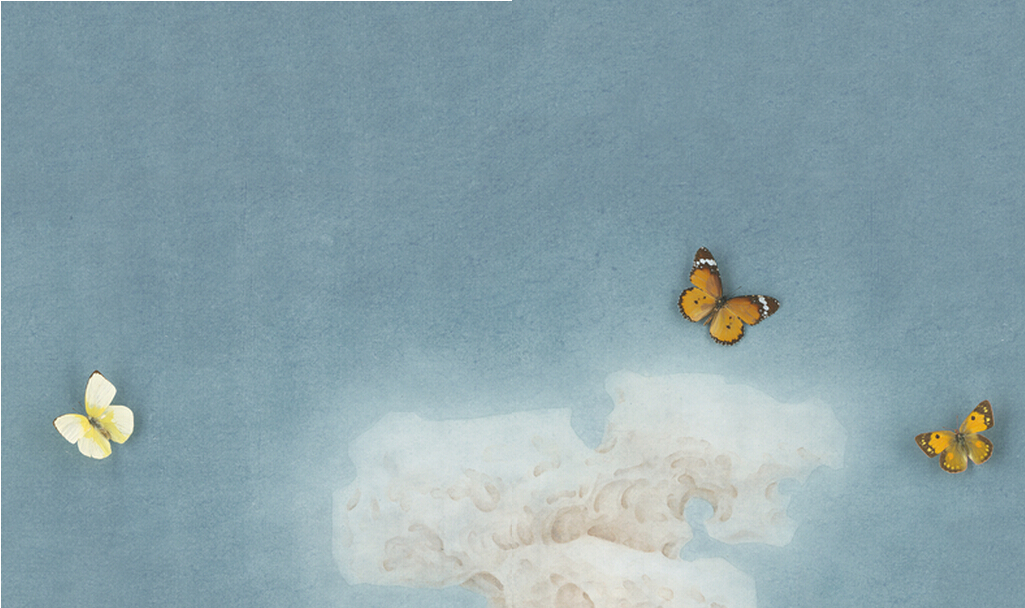 设色纸本、蝴蝶标本  手卷