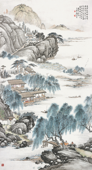 作为一代山水画宗师,钱松嵒此幅《溪堂春色》正是一幅反应其继承传统并加以创新的巨作。