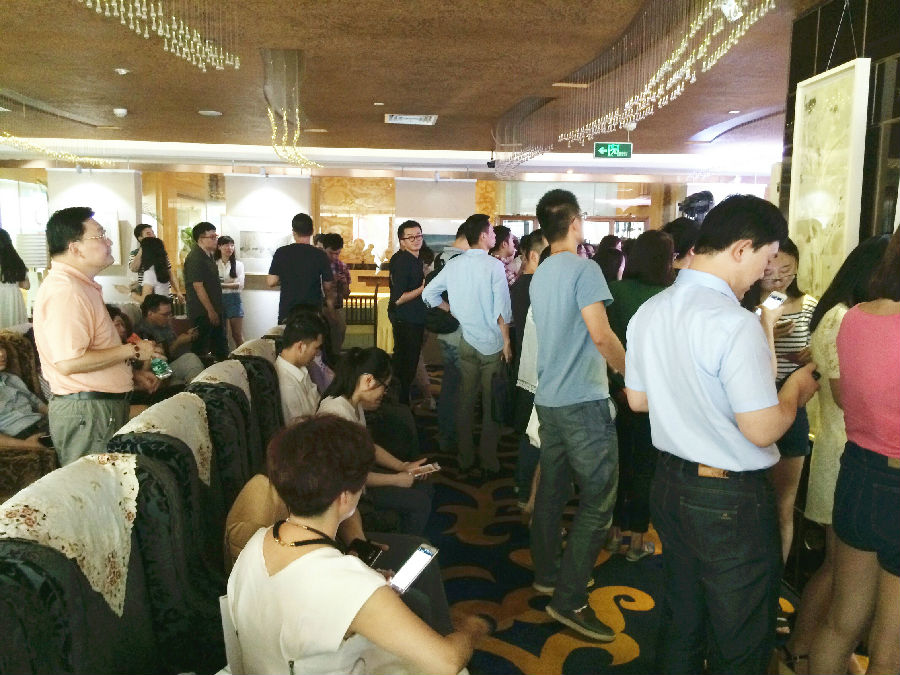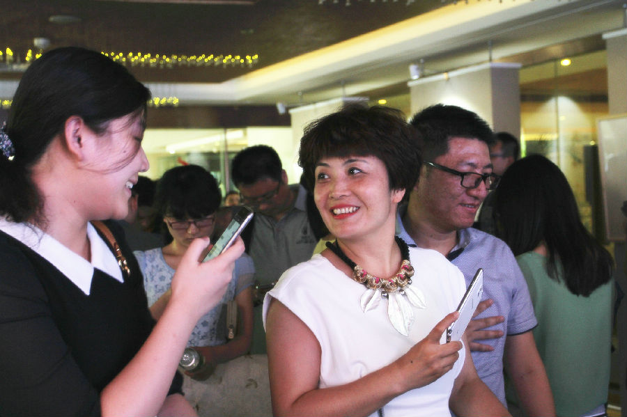6月11日,国内首创大众艺术分享平台——“凤凰艺彩”上线新闻发布会在南京举行。发布会进行中,投影屏上出现了“凤凰艺彩”微信公众号,只见凤凰出版传媒集团总经理周斌随手拿出手机,轻松买下了“凤凰艺彩”第一“注”。现场人头攒动,二、三百人摆出了“手机阵”,纷纷“投注”,场面好不热闹!多位年轻人向记者表示,过去从没有上过拍卖会、进过画廊,也没有买过书画什么的,“凤凰艺彩”真不错,让我们能轻轻松松地亲近艺术、分享艺术。