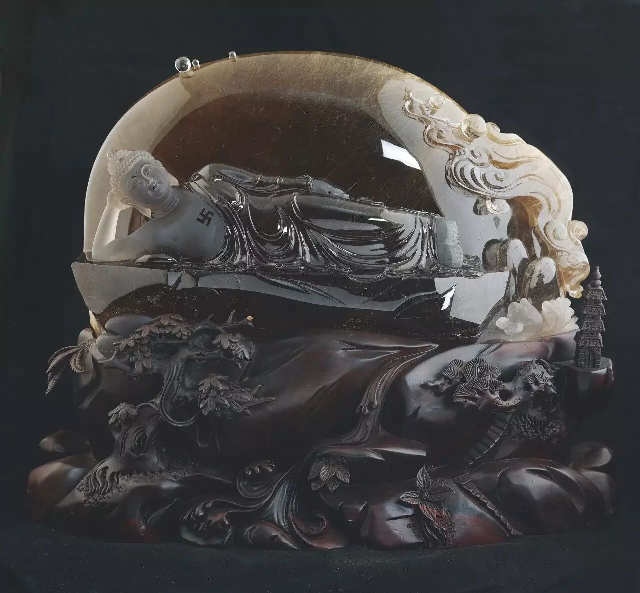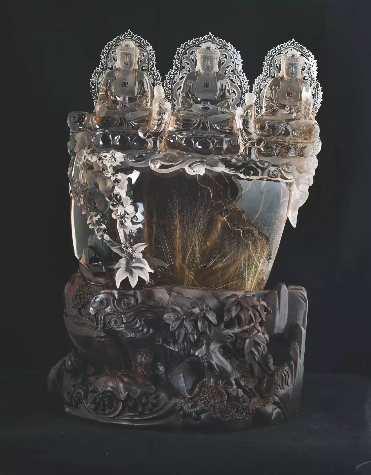 江苏东海县以蕴藏天然水晶储量大、质地高而著称于世,已成功实施国家地理标志产品保护,2013年东海水晶入选为“江苏符号”之一,成为地域文化名片。东海县同时也是世界天然水晶原料集散地,2016年被世界工艺美术协会冠名为“世界水晶之都”。天然水晶属贵重矿石,宝石的一种,产量较少,古称“水玉”“水精”。“东海水晶”开发可追溯到19世纪,真正为人们所熟知是近几十年来的事,逐渐形成了以福寿文化为代表的东海水晶文化。但天然水晶作为宝石一种的珍稀性和天然水晶雕件的艺术价值,往往不被人们所认知,甚至误将其归入工艺品一类,一些大师级作品也只零星出现在国内拍卖市场上。