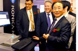 陈海燕董事长摁动揿钮,第一张数码印品新鲜出炉