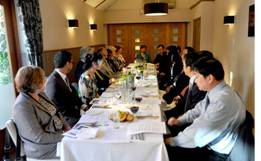 开业典礼前一晚,凤凰伦敦代表团抵达伦敦公司落户所在地区巴塞尔顿后,即受到当地政府的隆重接待与宴请。埃郡副郡长凯文•本特雷,巴塞尔顿市长托尼•鲍尔先生和首席执行官巴拉•马汉德兰先生等出席了晚宴,双方就伦敦公司的发展与未来进行了沟通。埃方表示将为伦敦公司在英国的事业拓展,提供全方位的支持。对此,陈海燕董事长表示感谢,他介绍“凤凰传媒国际(伦敦)是凤凰在英国与欧洲的窗口,更是一个试验田。以此为起点,凤凰在英国的投资将会在更多领域展开”,“凤凰有意于在一年内开拓出版业务,在未来还会考虑其它项目”。