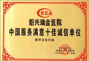 中国服务满意十佳诚信单位
