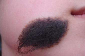 黑毛痣是色痣的一种类型,应注意对之加以提防。此类痣尤其有碍观瞻,局部发黑,表面粗糙不平甚至隆起,并“配”以硬质短毛。这就仿佛一盘上好的菜肴里撞进一只苍蝇,对爱美的女性来说无疑是一种痛苦的折磨。