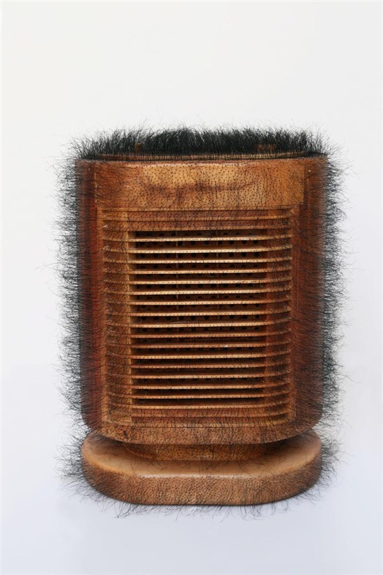 《雨刷》103 * 38 * 8cm * 2 动力装置, 木雕,毛发 2006